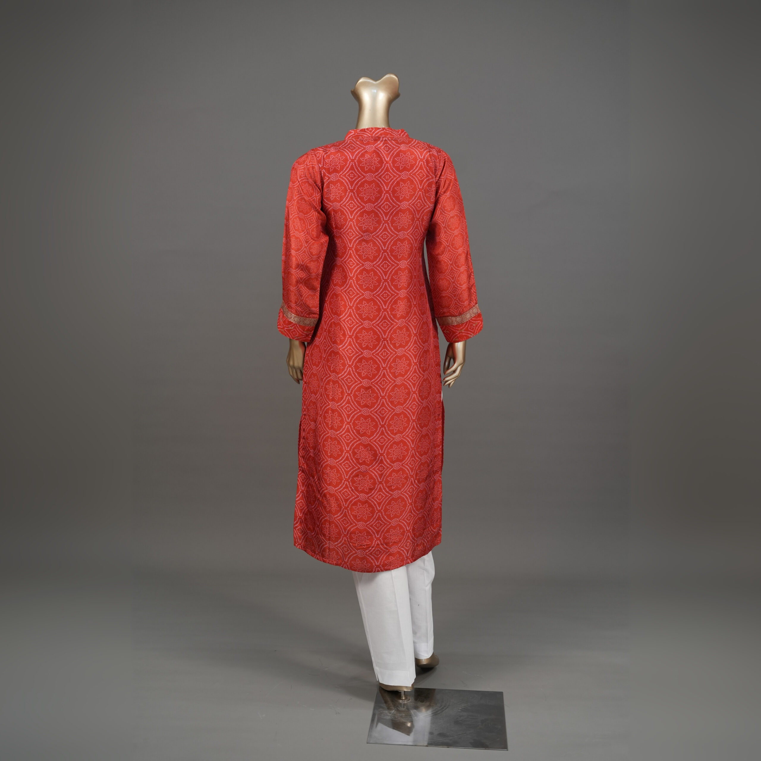 Bring elegance and comfort together with this Rust Cotton Printed A-Line Kurti. Designed in soft cotton fabric, it is enhanced with hand embroidery and delicate mirror work, adding a traditional touch. The front slit gives it a modern appeal, making it suitable for casual wear, festive gatherings, or office wear. Pair it with leggings, palazzos, or even jeans for a chic Indo-western look.