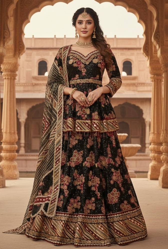• Original Name : Black Net & Velvet Hand Embroidered Lehenga with Sequin Top & Dupatta