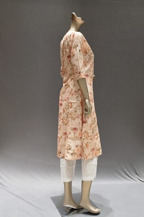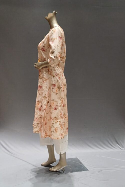 | Product description | Cream flowerprint ‘A’ line kurti , pearlwork on Neck patti |