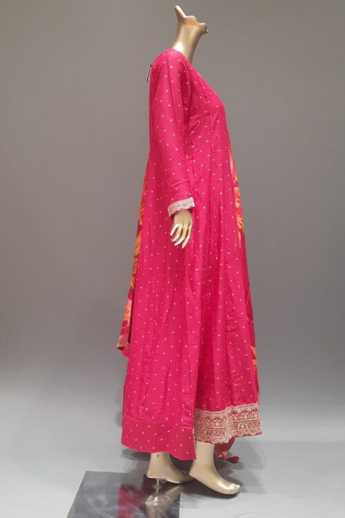 | Product Description | Anarkali one piece with Bandej print and Embroidery work printed dupatta with border and Tussels |
