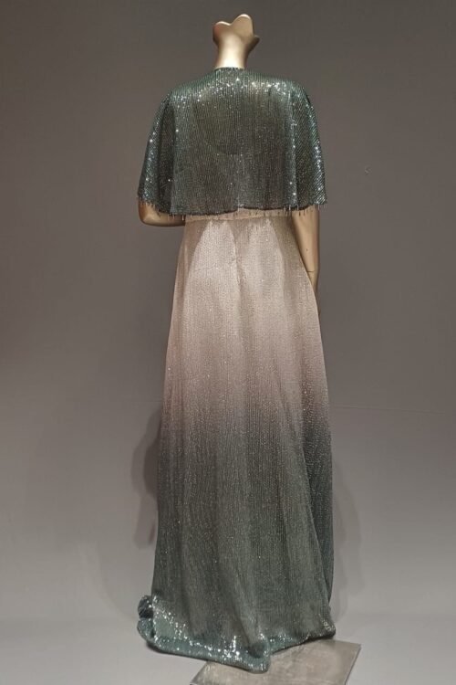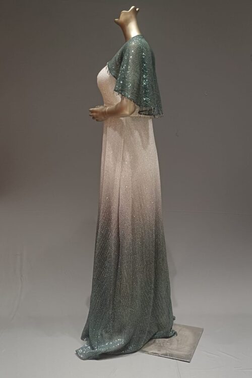shaded green silver lycra full length gown with shoulder cap
