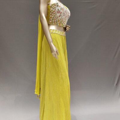 | Product Descriptions | Crop Top with Handwork, Flared Palazzo with Sequins and Plain Georgette Dupatta with Tassels |
