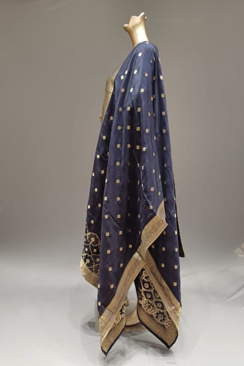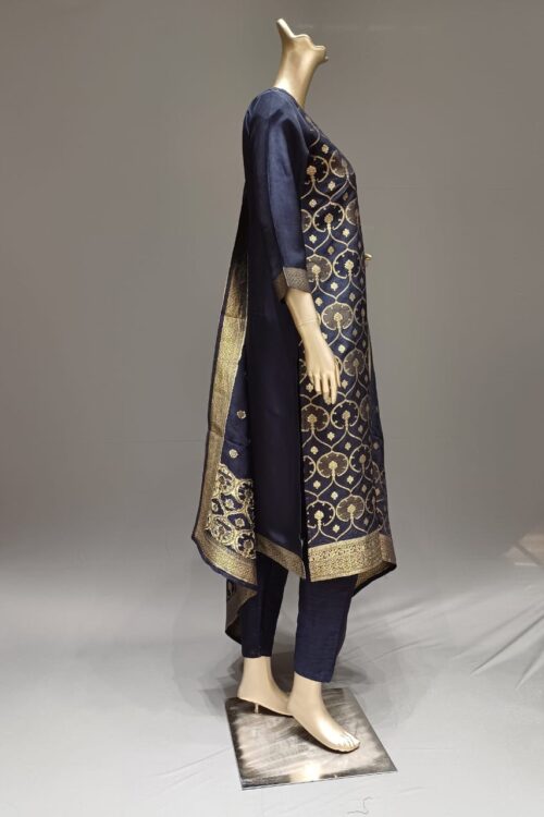 Navy Blue Banarasi Silk Suit Set with Pant & Dupatta for Festive Wear