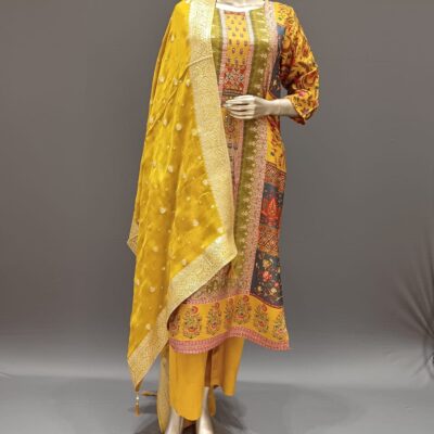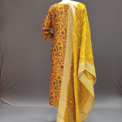 | Product Description | Printed Kurta with embroidery at front , plain bottom with Banarsi silk self work Dupptta with Tussels. |