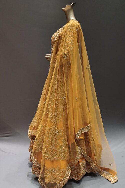 Orange Raw Silk Lehenga Choli with Kasab, zardozi & Mirror Hand Work – Wedding wear