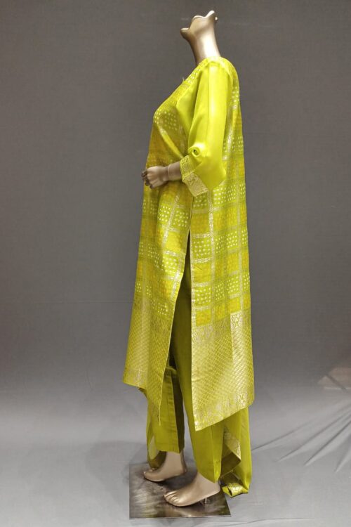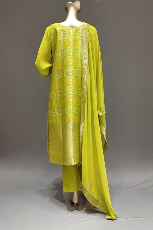 | Product Description | Banarasi Kurta allover and 100 Handwork on Neckline with simple pant & Brocade Border allover Plain Duptta |