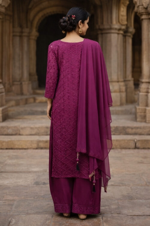 Purple Chiffon Silk Palazzo Suit with Embroidery & Sequins Work
