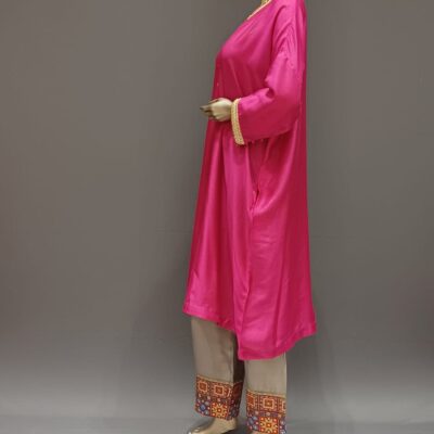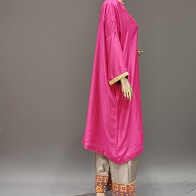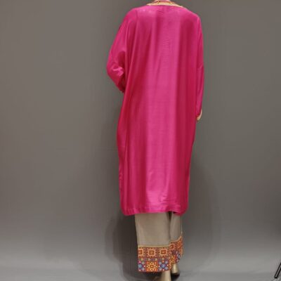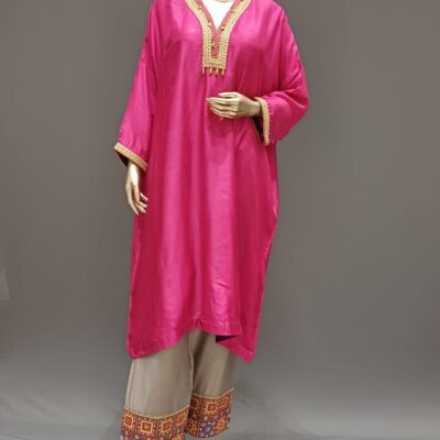 | Product discription | Tunic set, with kaftan Top with inner and Embroidery Work in Neck and sleeve, Plain inner, Plain plazzo with border at bottom hem |