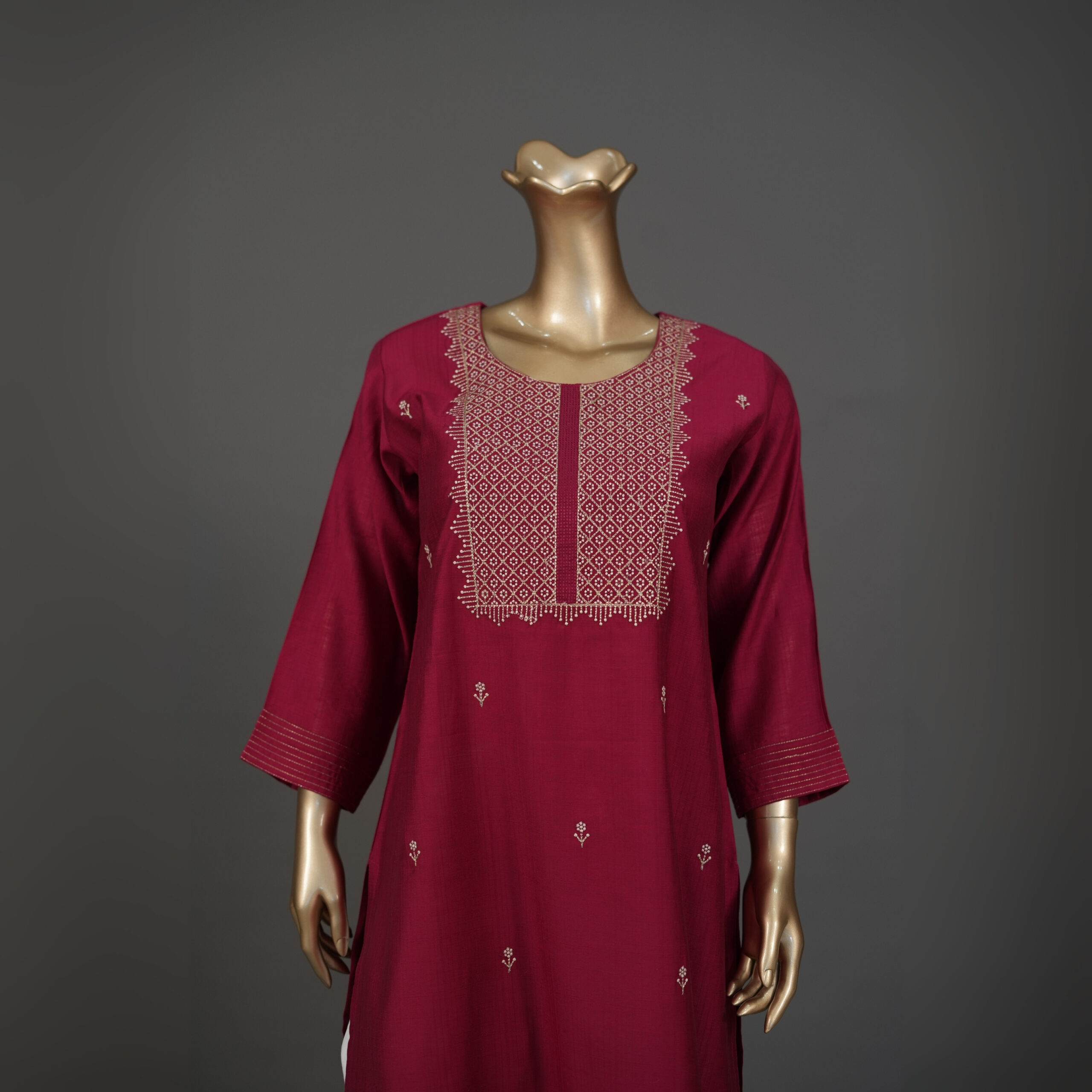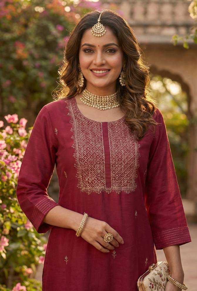 | Original Name (Title) | Rani Embroidered Silk Kurti – Traditional Party Wear |