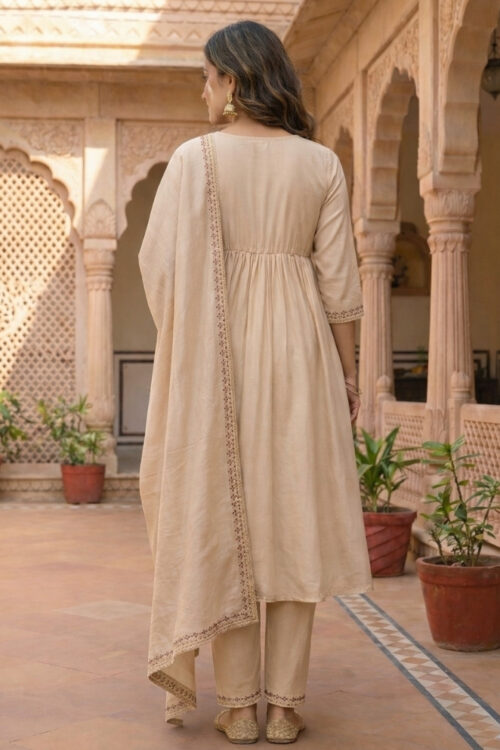 Ivory Silk Anarkali Suit with Pant & Dupatta