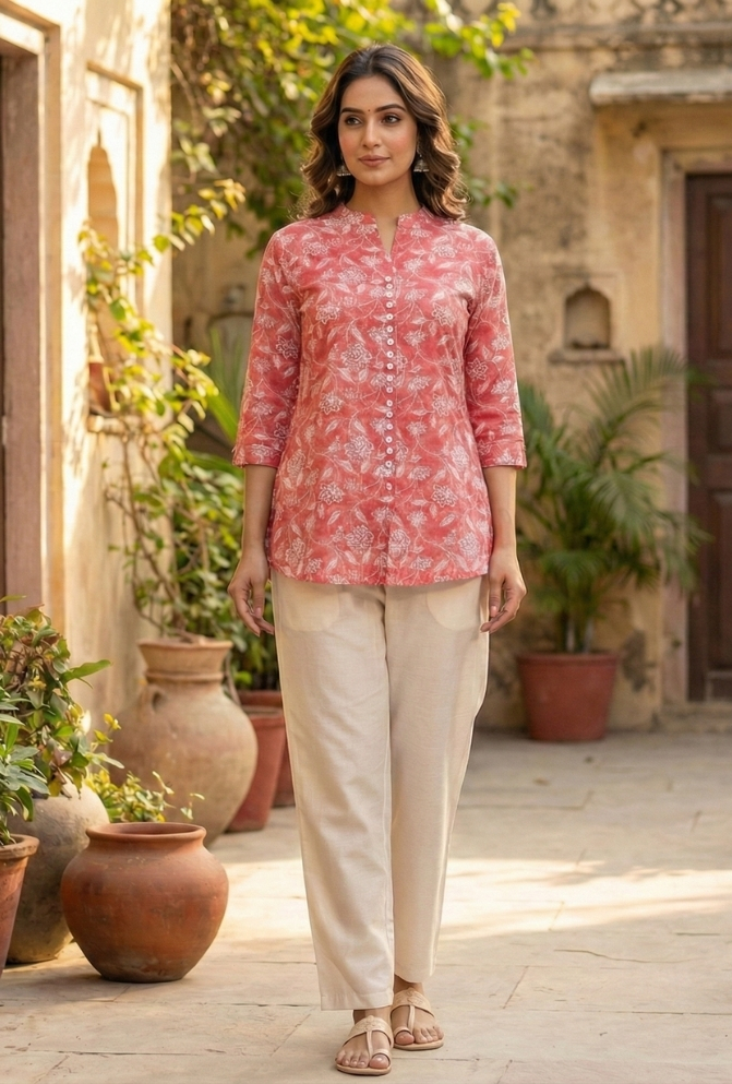Add a pop of freshness to your ethnic wardrobe with this Pink Rayon Printed Short Kurti. Featuring a show button design and crafted in lightweight rayon, this kurti offers both comfort and elegance. Its festive casual appeal makes it an ideal pick for daily wear, office dressing, small gatherings, and travel looks.