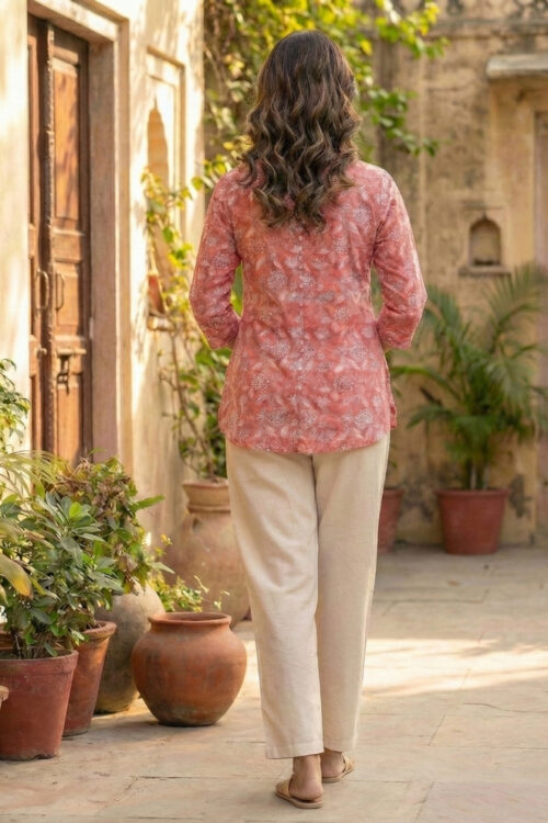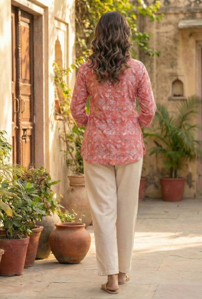 • Original Name : Pink Rayon Printed Short Kurti – Festive Casual Top