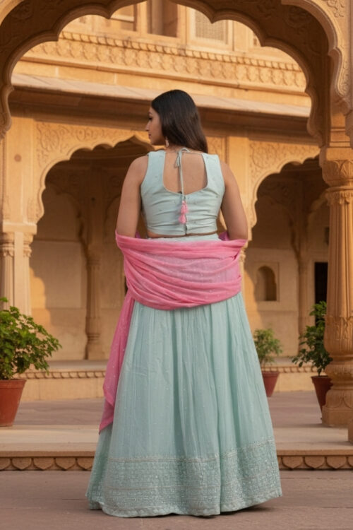 | Product description | Lahenga with Embroidery and Sequense Blouse with handwork and dupatta with allover sequense |