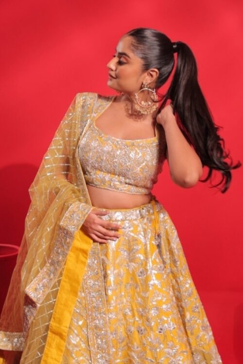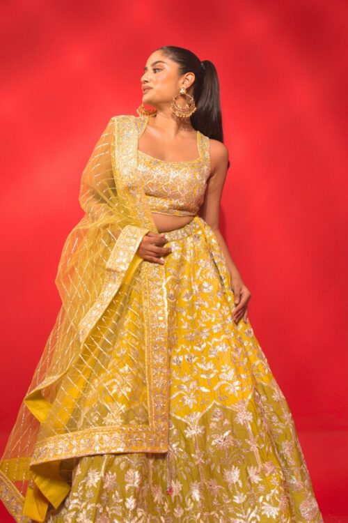 | Design No | GD-1895 LAHENGA CHOLI YELLOW |