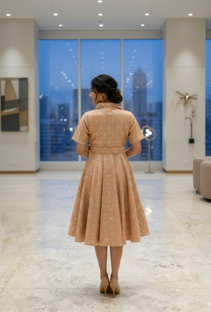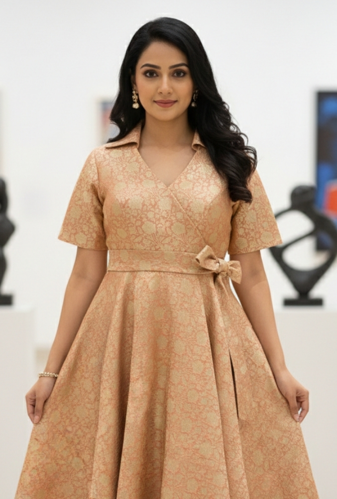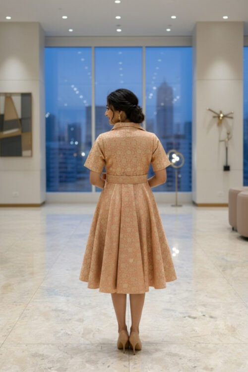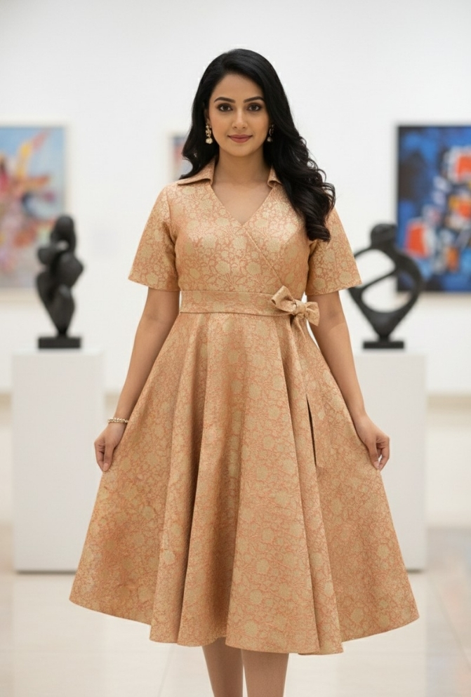 Peach Banarasi Brocade Silk Frock